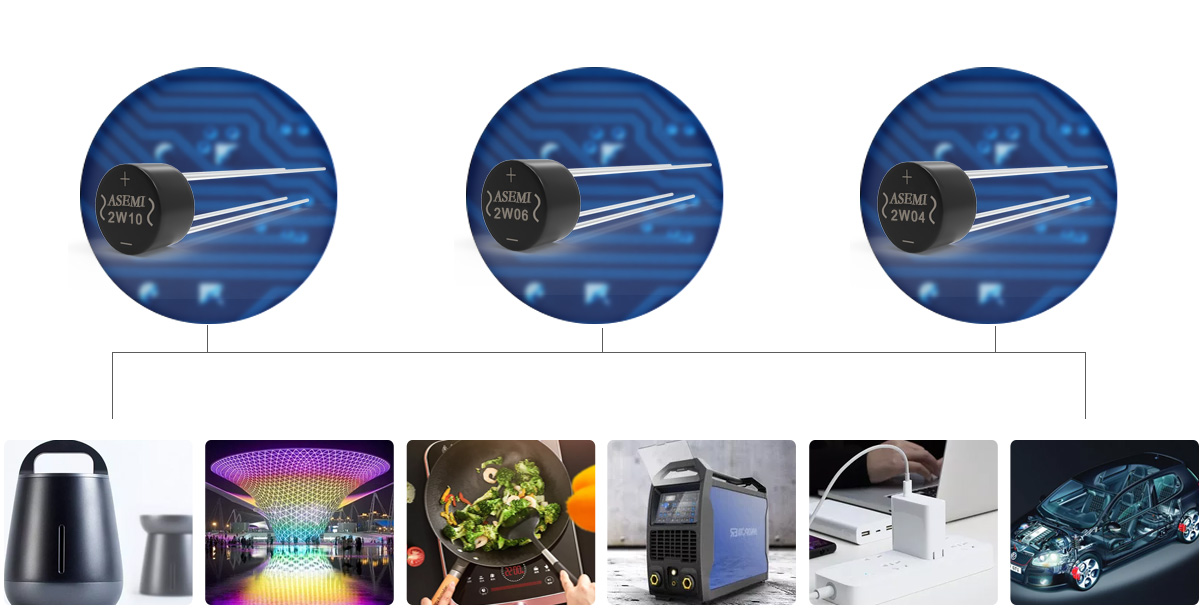 整流桥被广泛适用于:电源、充电器、适配器、LED灯饰、大小家电、民用及工业设备等产品中使用